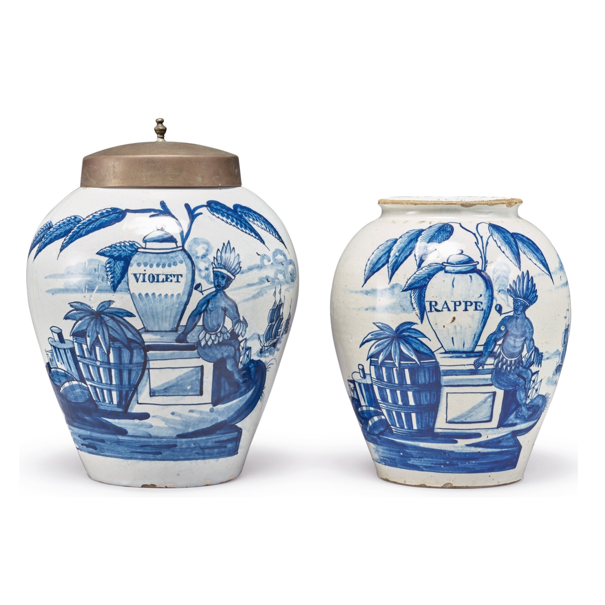 Two Dutch Delft Blue And White Tobacco Jars And One Metal Cover Late 18th Century Mario Buatta Prince Of Interiors Sotheby S